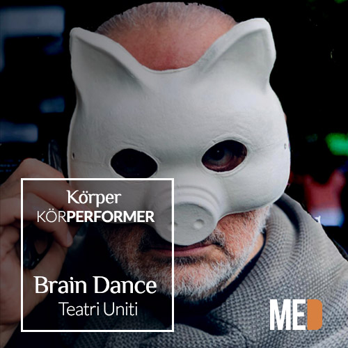 Per la seconda serata di KÖRPERFORMER, Angelo Curti in scena con Brain Dance (m’abballan e cervell). Ogni moto del corpo nasce dal cervello. Con le parole e con la musica...